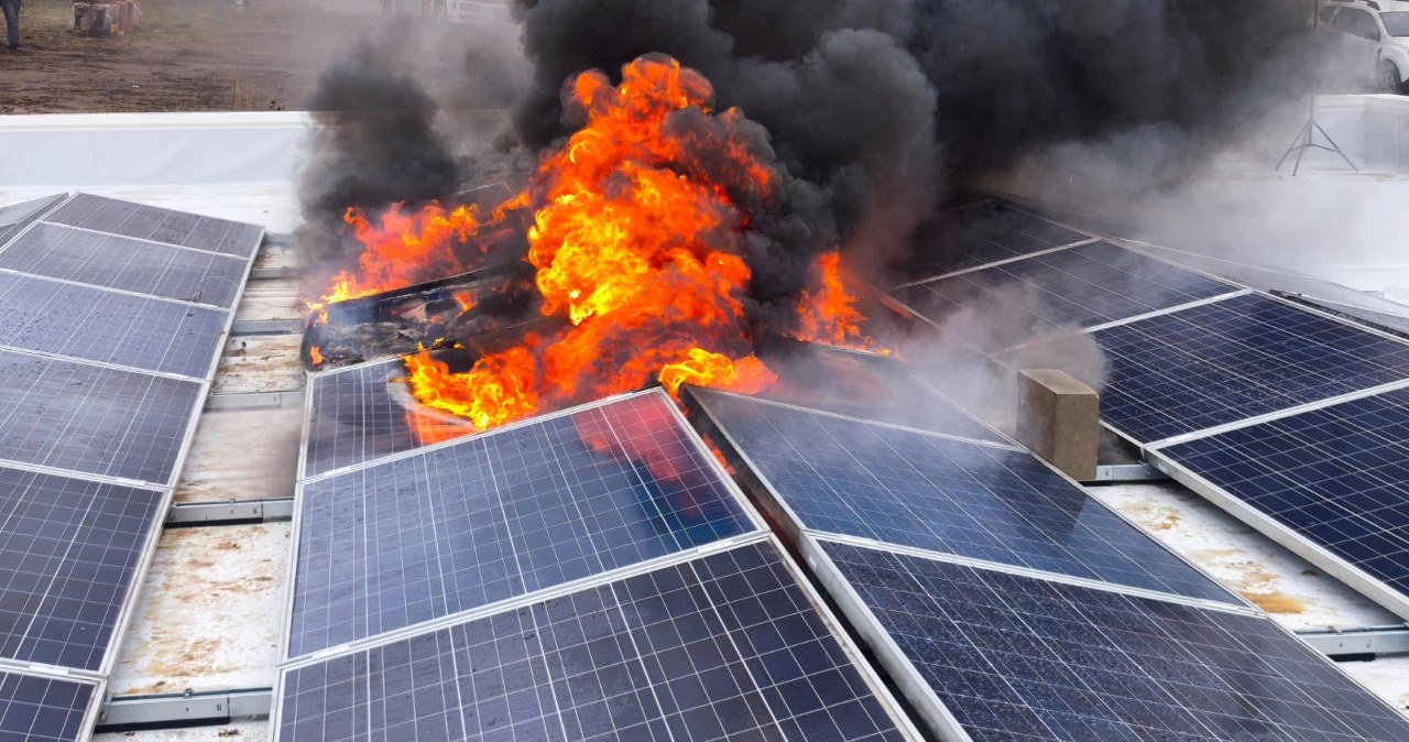 W ramach testu podpalili panele fotowoltaiczne. Jak rozprzestrzenił się pożar?